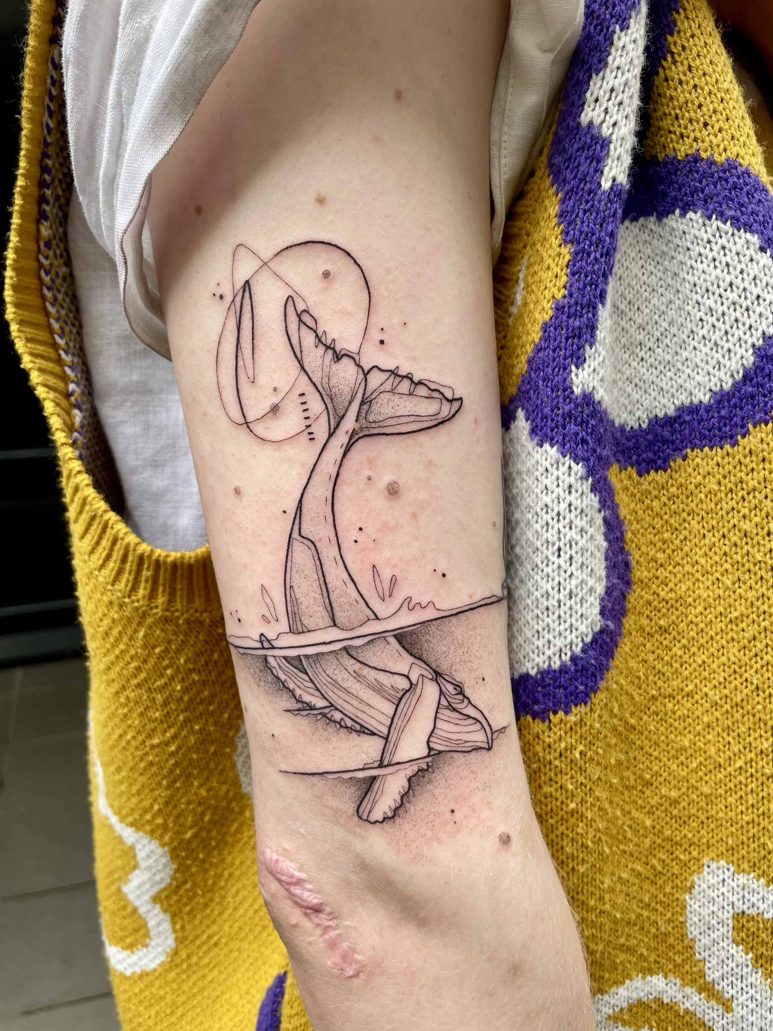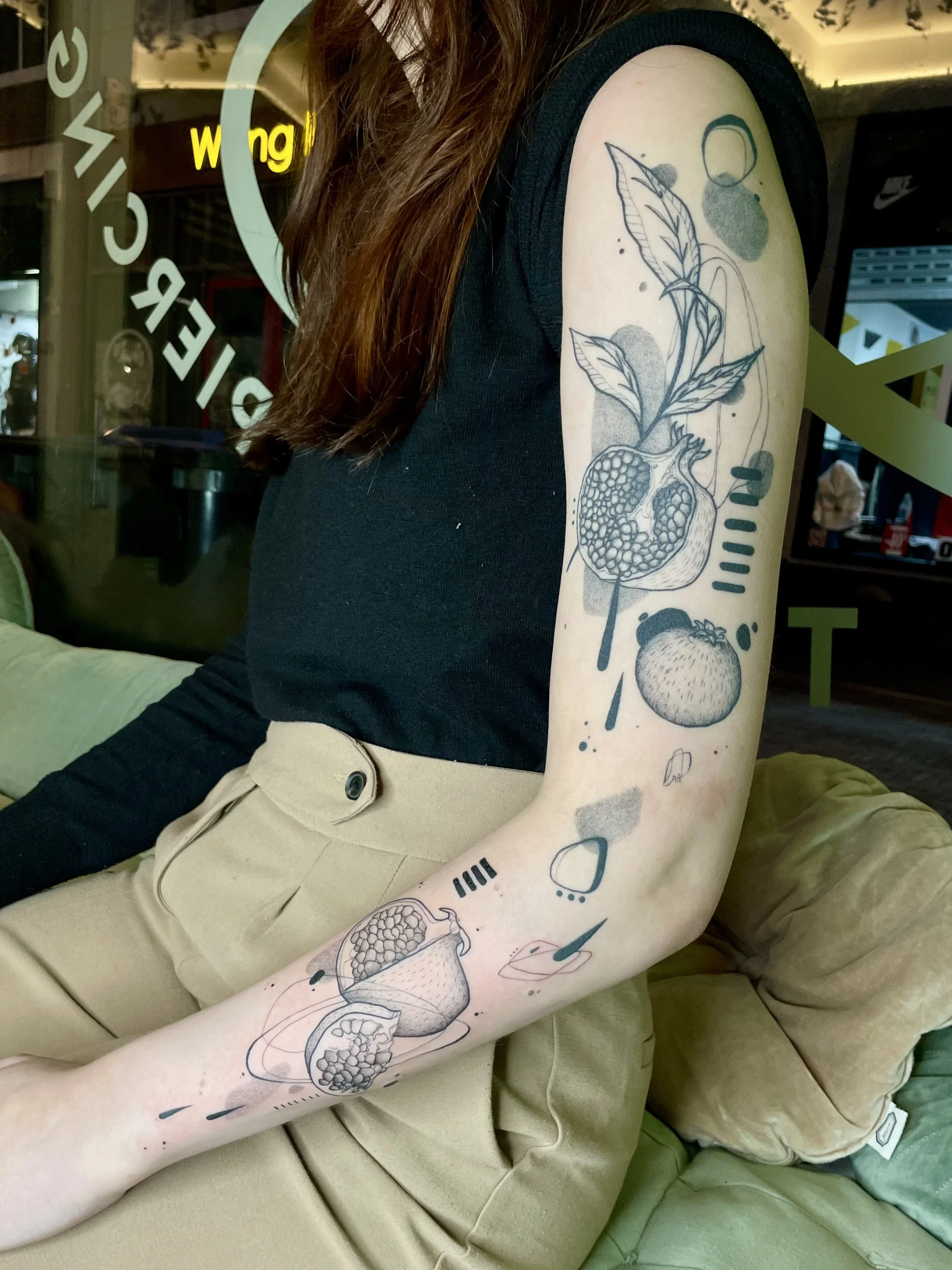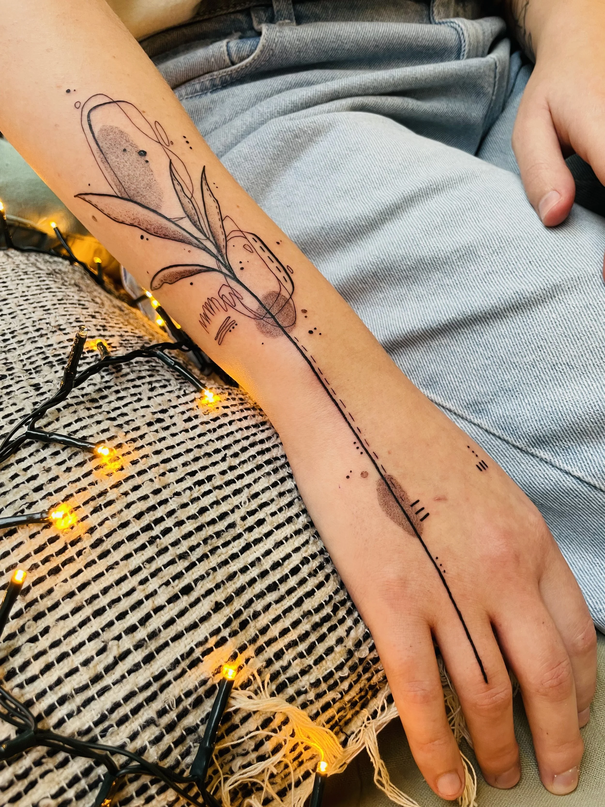 i create tattoos in a graphic, slightly abstract style. my favorite subjects are animals and botanical forms, often drawn with delicate lines and quiet symbolism. i usually work with black ink, letting contrast and texture speak for themselves - but i also enjoy weaving in soft accents of color when the design asks for it.