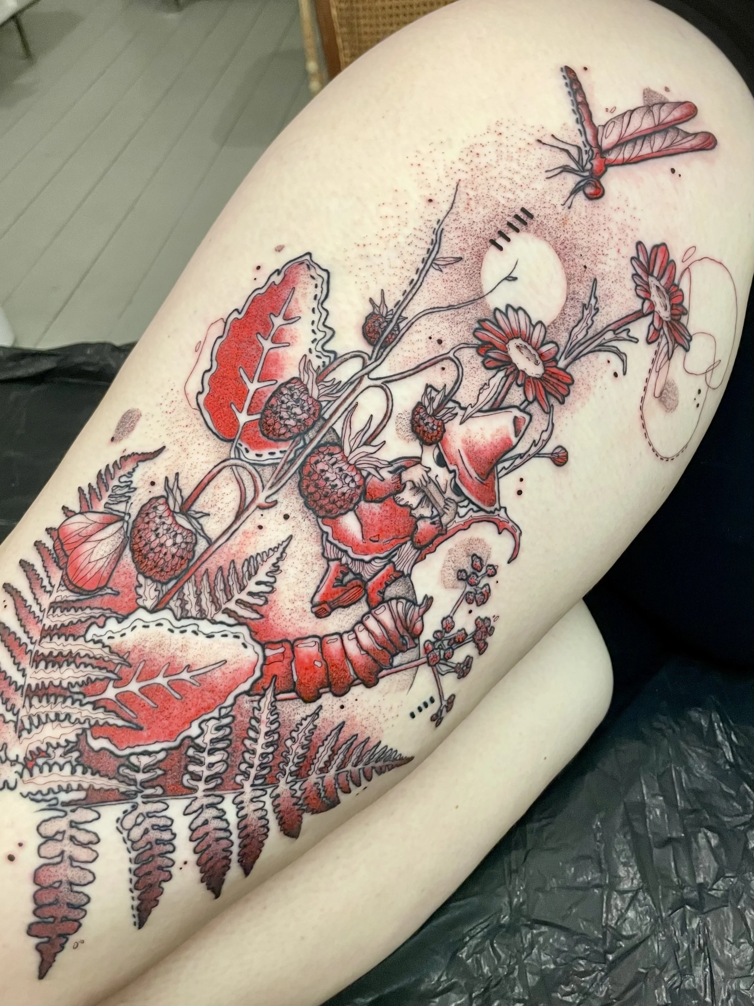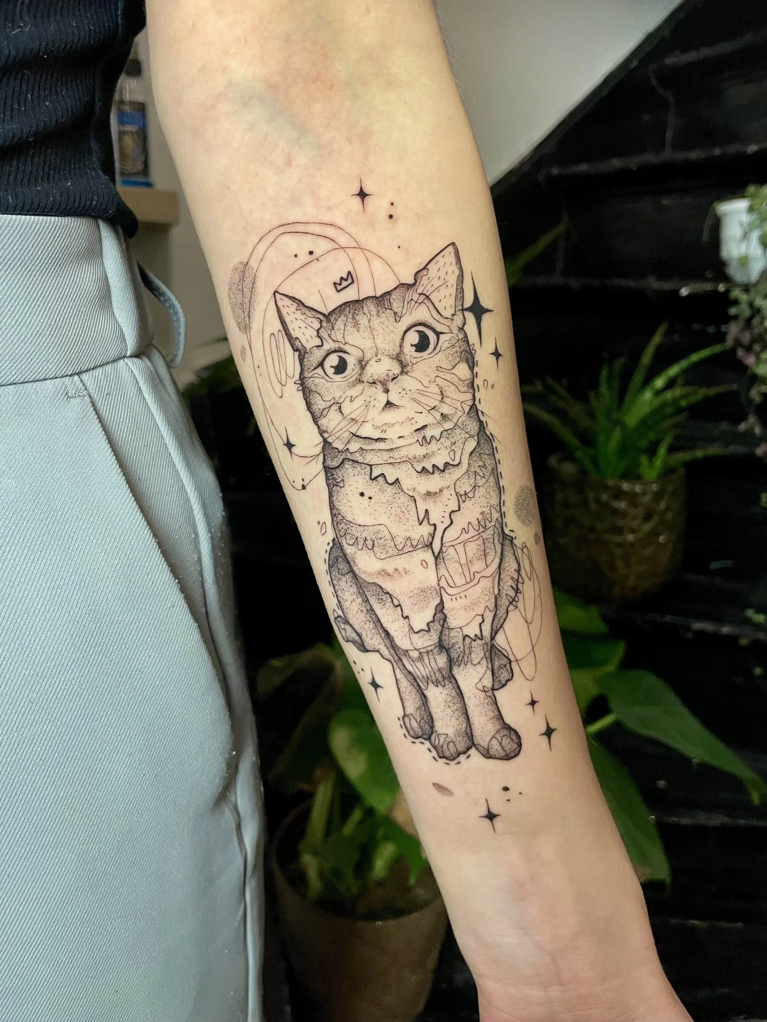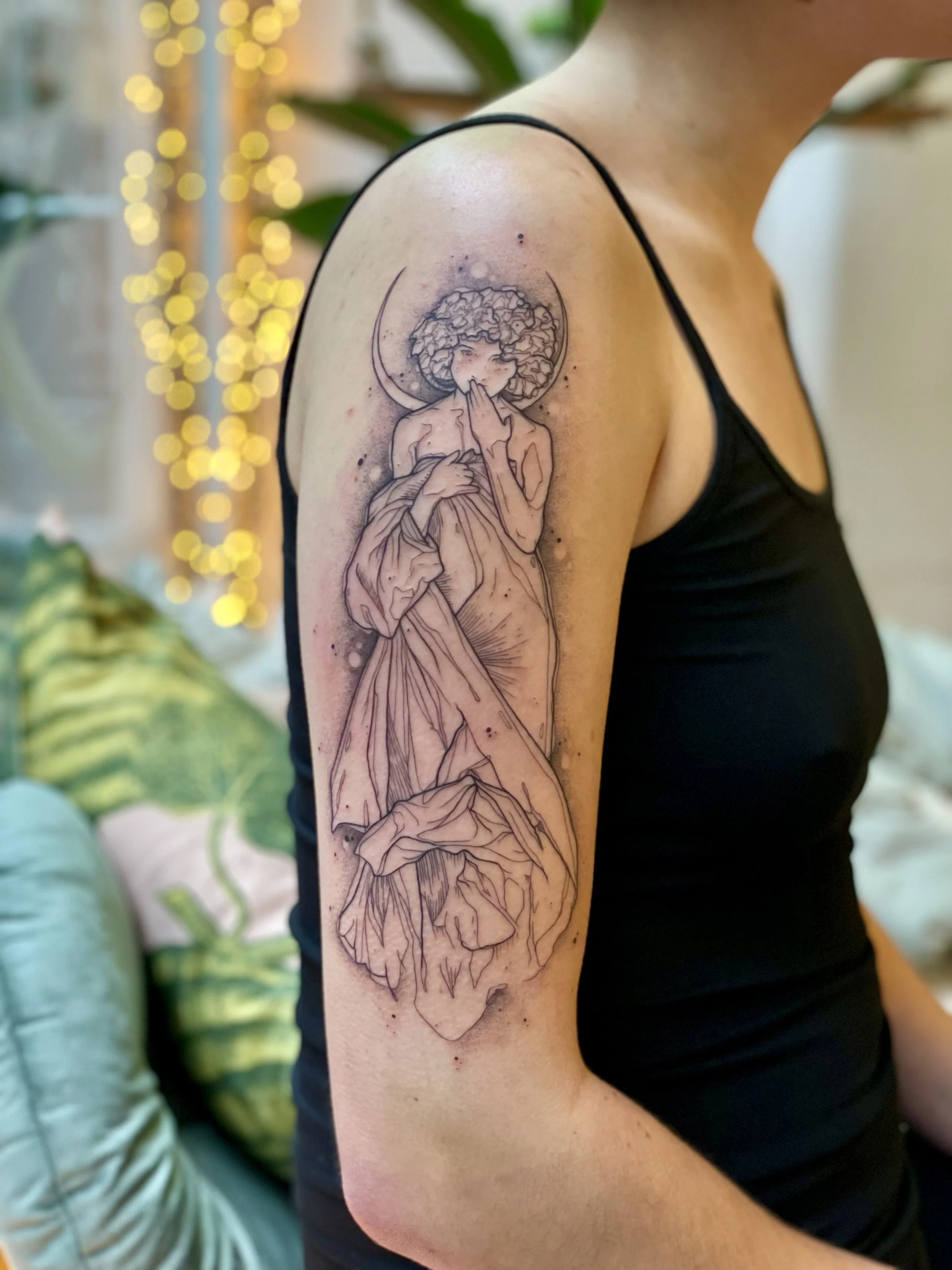 i create tattoos in a graphic, slightly abstract style. my favorite subjects are animals and botanical forms, often drawn with delicate lines and quiet symbolism. i usually work with black ink, letting contrast and texture speak for themselves - but i also enjoy weaving in soft accents of color when the design asks for it.